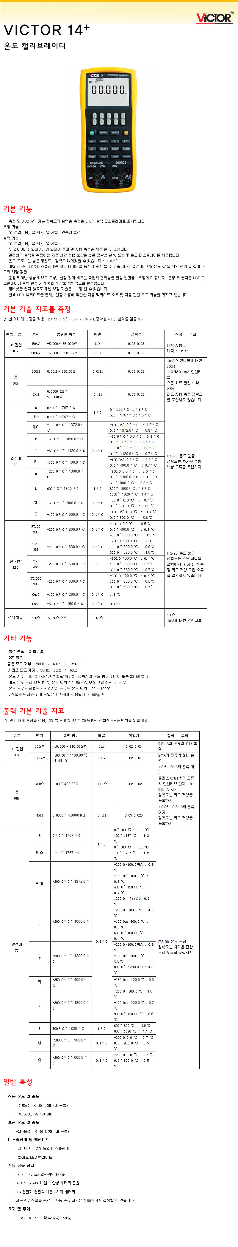 [정품] VICTOR/ 온도 Calibrator(정밀급)/ 온도교정기/ VICTOR-14+/ VICTOR14+/